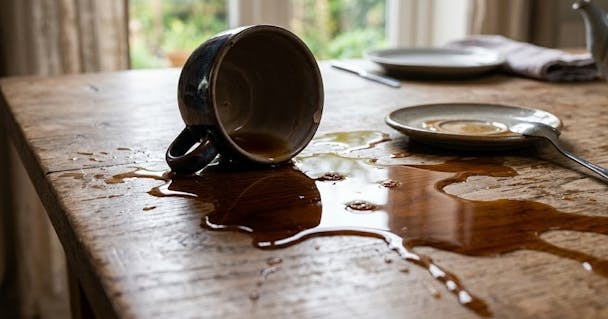 Assim, “derramar o chá” simboliza deixar escapar aquilo que estava guardado.