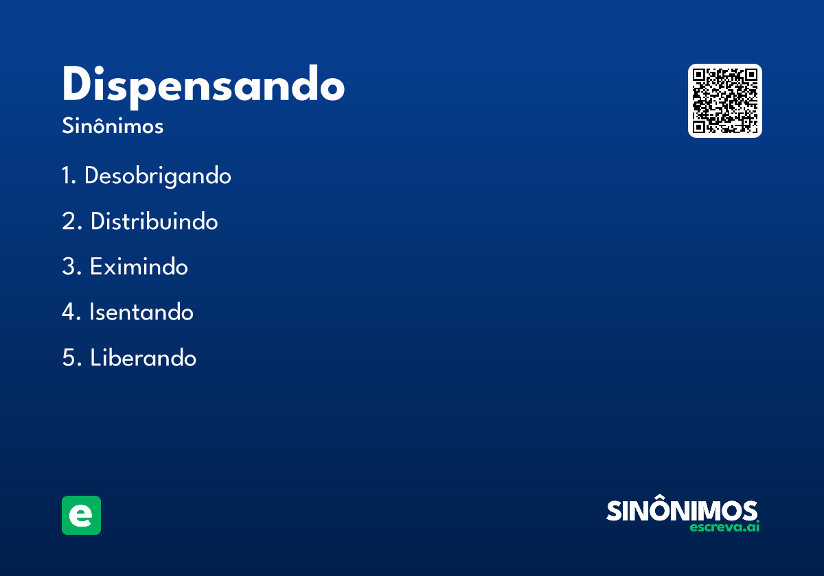 - Gerúndio do verbo dispensar, indicando a ação em curso de liberar alguém de uma obrigação ou compromisso.
